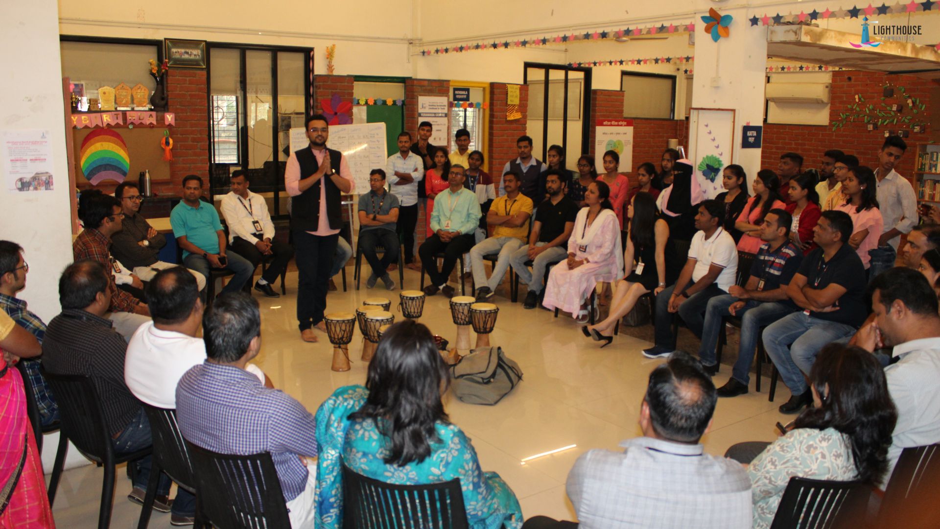 The visit concluded with all the visitors participating in the Drum Circle, a stress-relieving activity used to bring people together through meditative rhythms with the help of various musical instruments. The participants thoroughly enjoyed it.