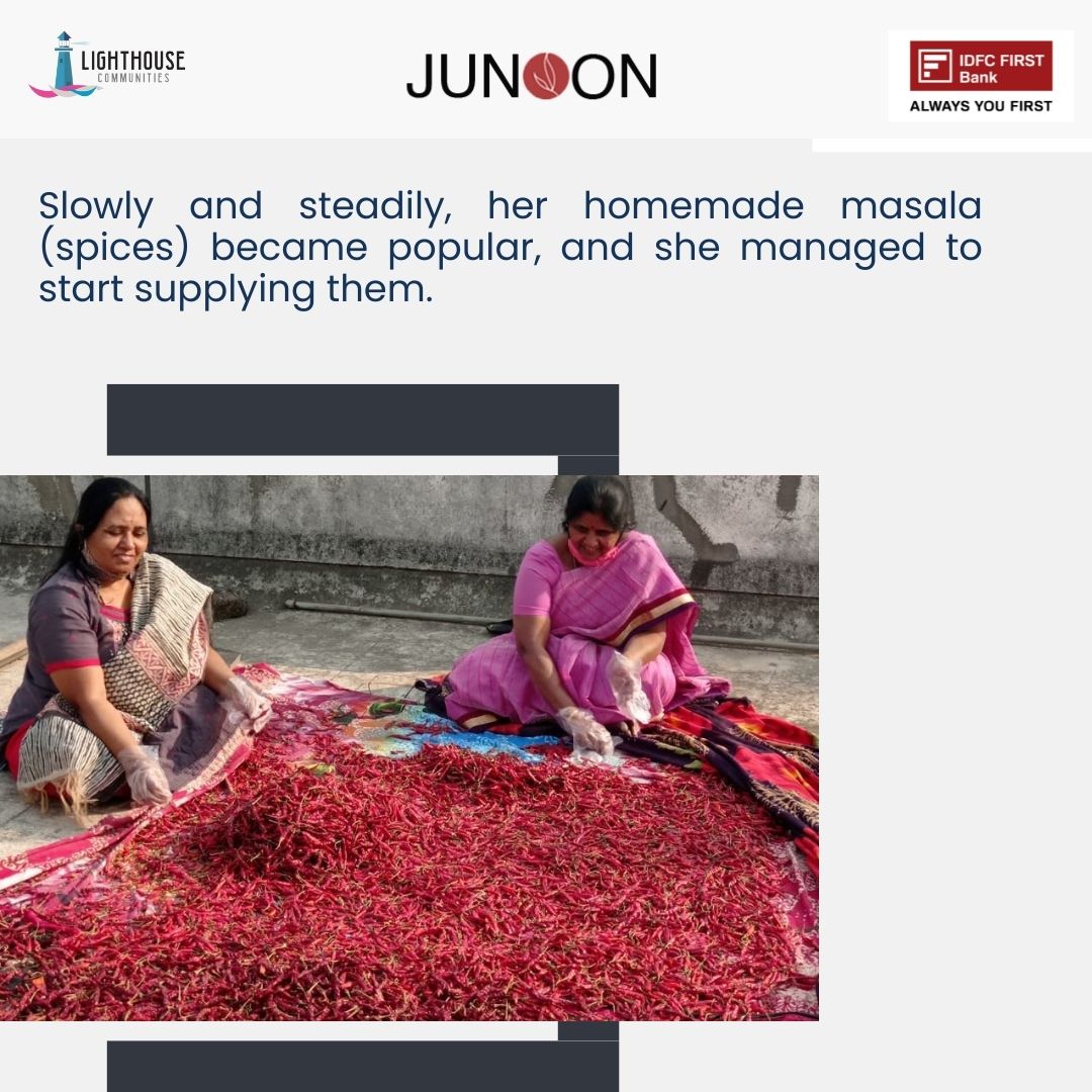 She started by making snacks and executing orders for small gatherings. Once confident about her cooking skills, she thought of using homemade masala, just like her mother used to. Slowly and steadily, her homemade masala became popular, and she managed to start supplying them under the name “Malhaar Foods” (Malhaar foods)