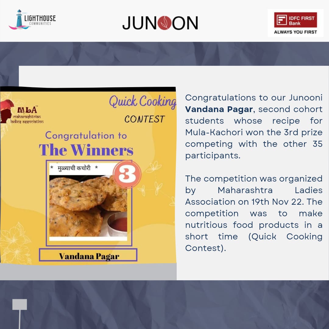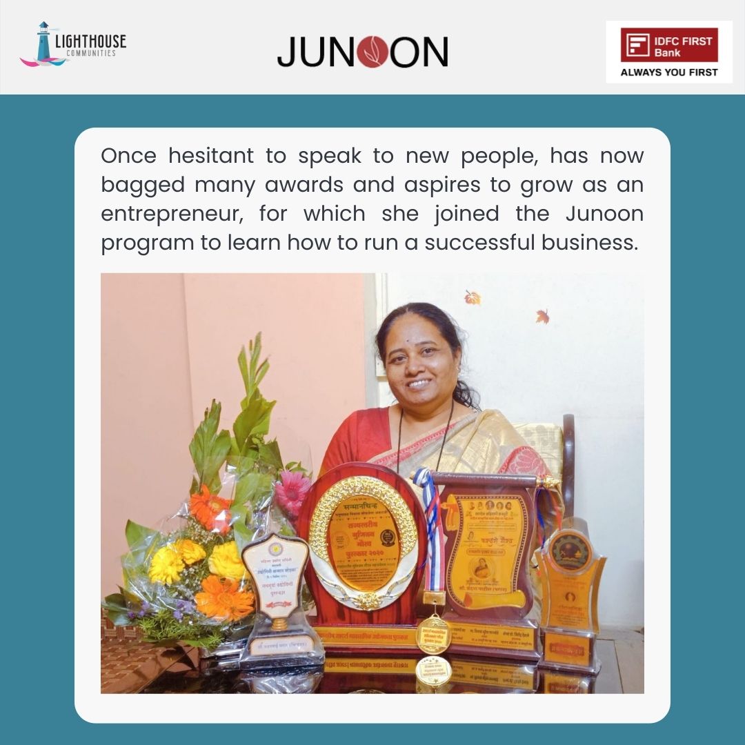 Once hesitant to speak to new people, she has now bagged many awards and aspires to grow as an entrepreneur, for which she joined the Junoon program to learn how to run a successful business.