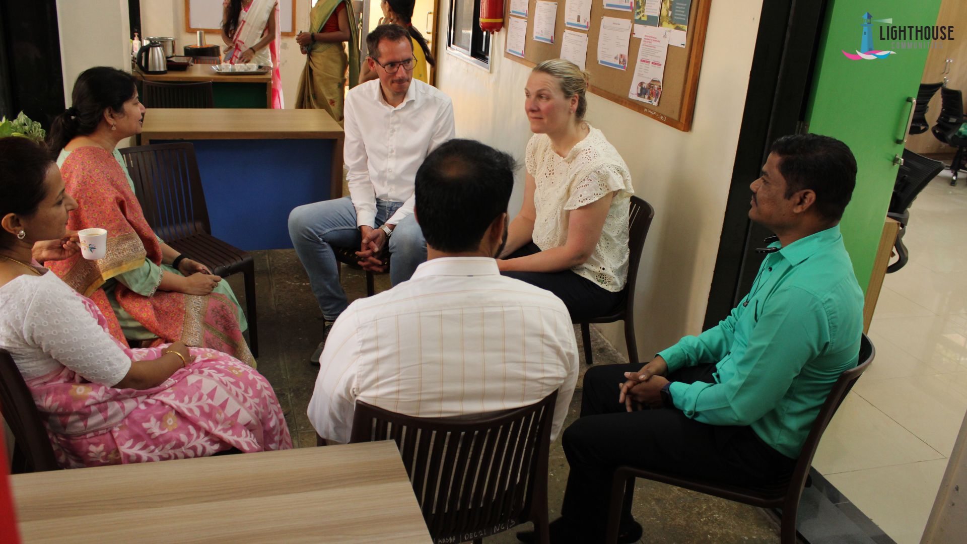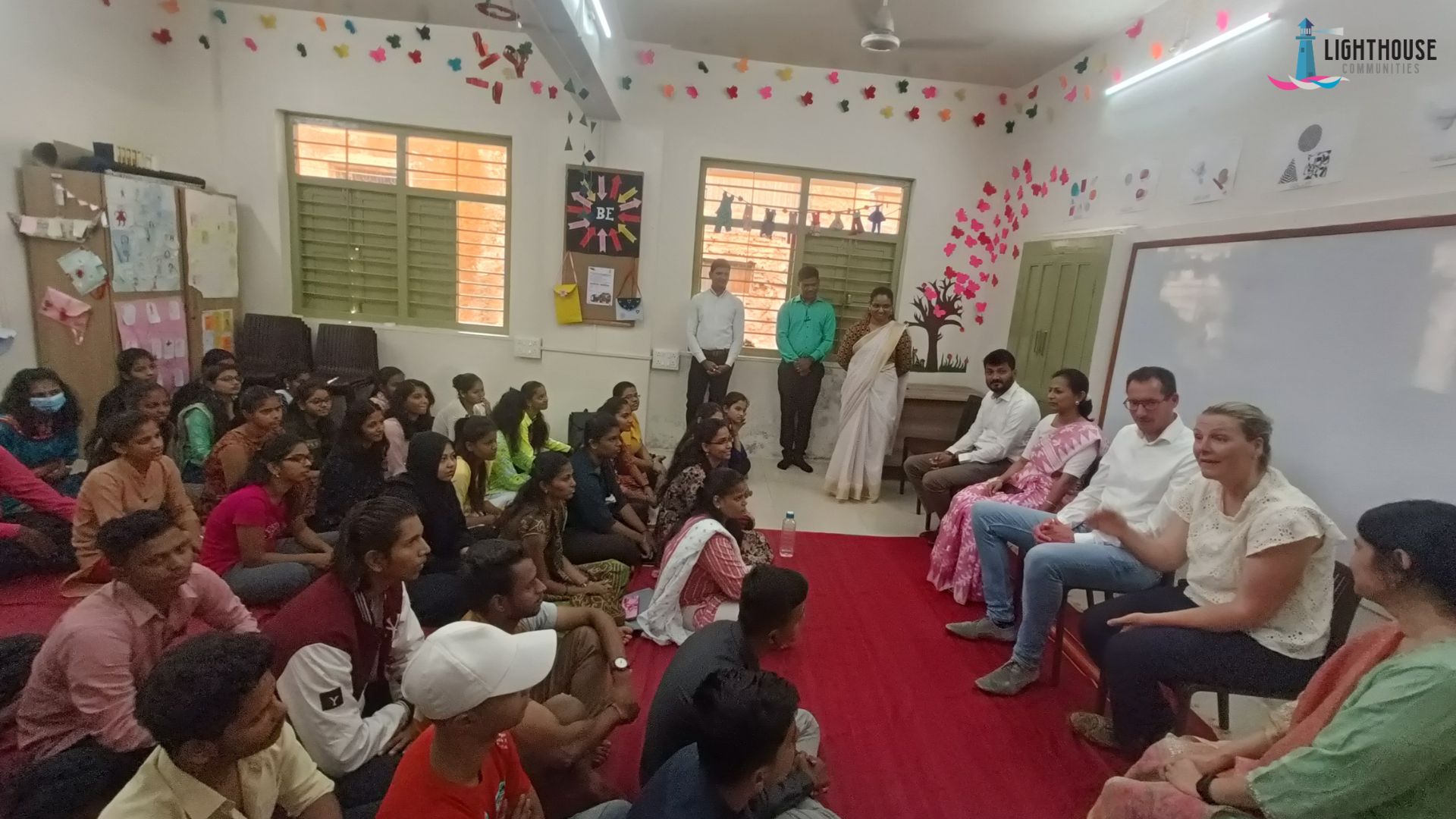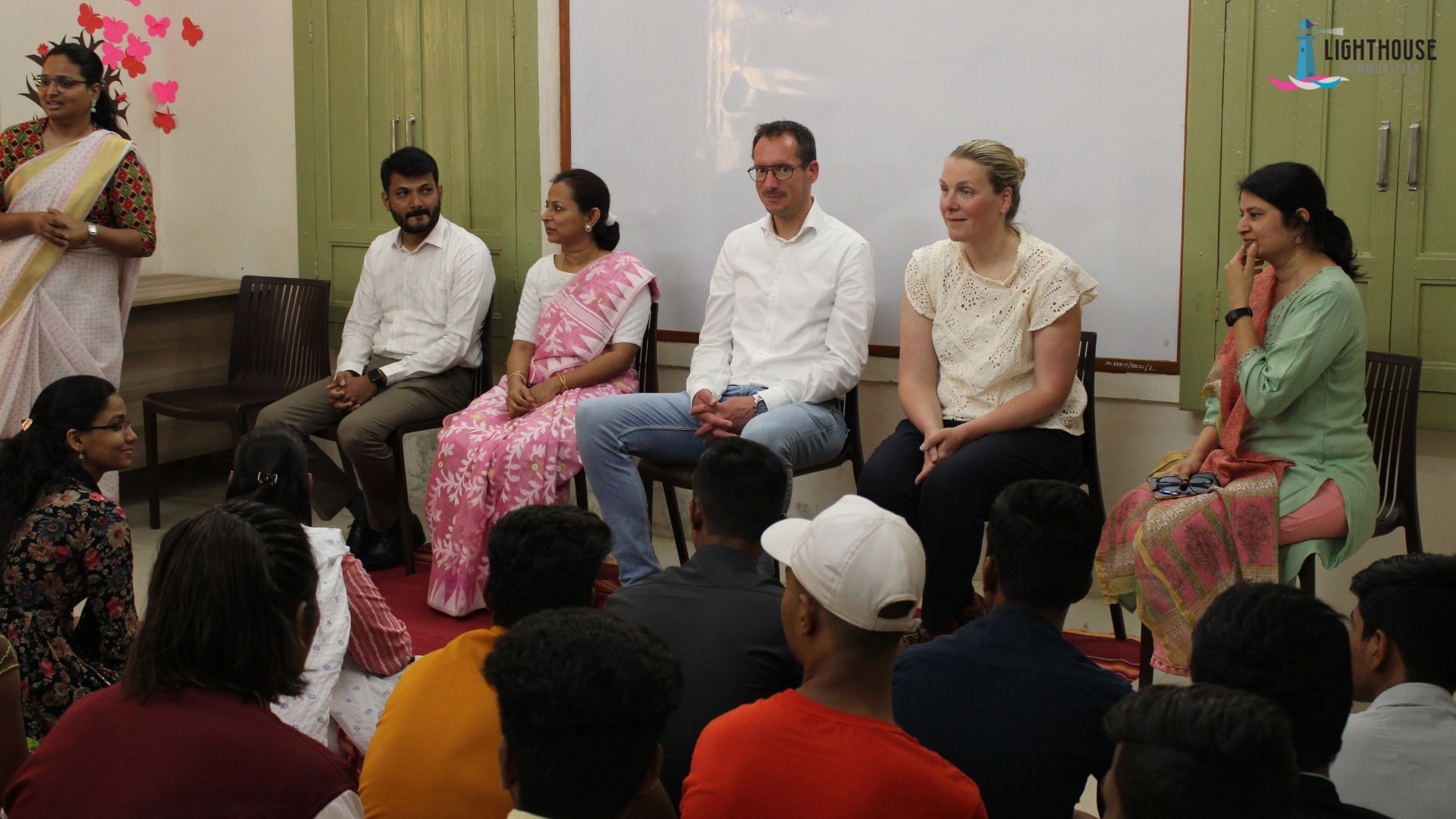 Afterward, they visited the home of Yogita Rajendra Shitole, an alumna of the Lighthouse. Yogita successfully completed her Nursing Assistant course and now works at Ruby Hospital. Mr. Albert Hoekman also spoke to the youth, advising them to seize the opportunities coming their way. We would like to express our gratitude to Astrid and Albert for visiting the Lighthouse and spending time with the youth.
