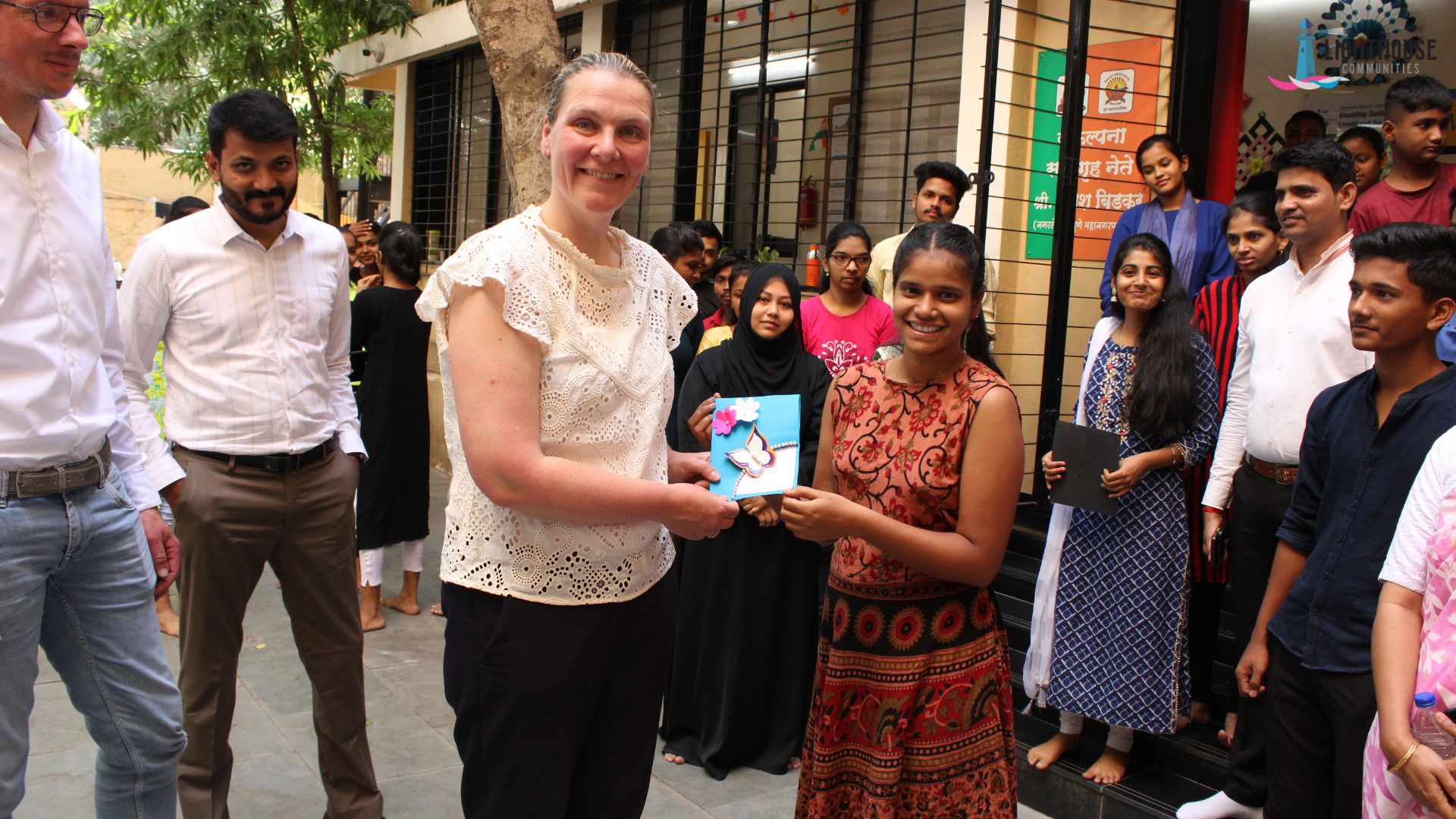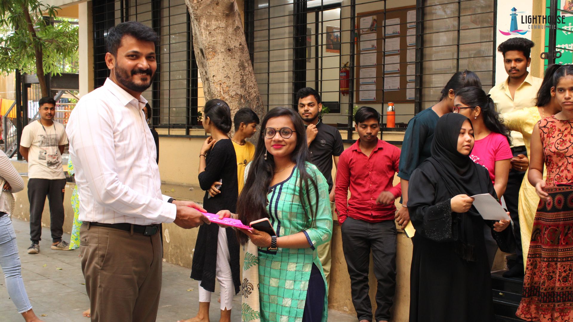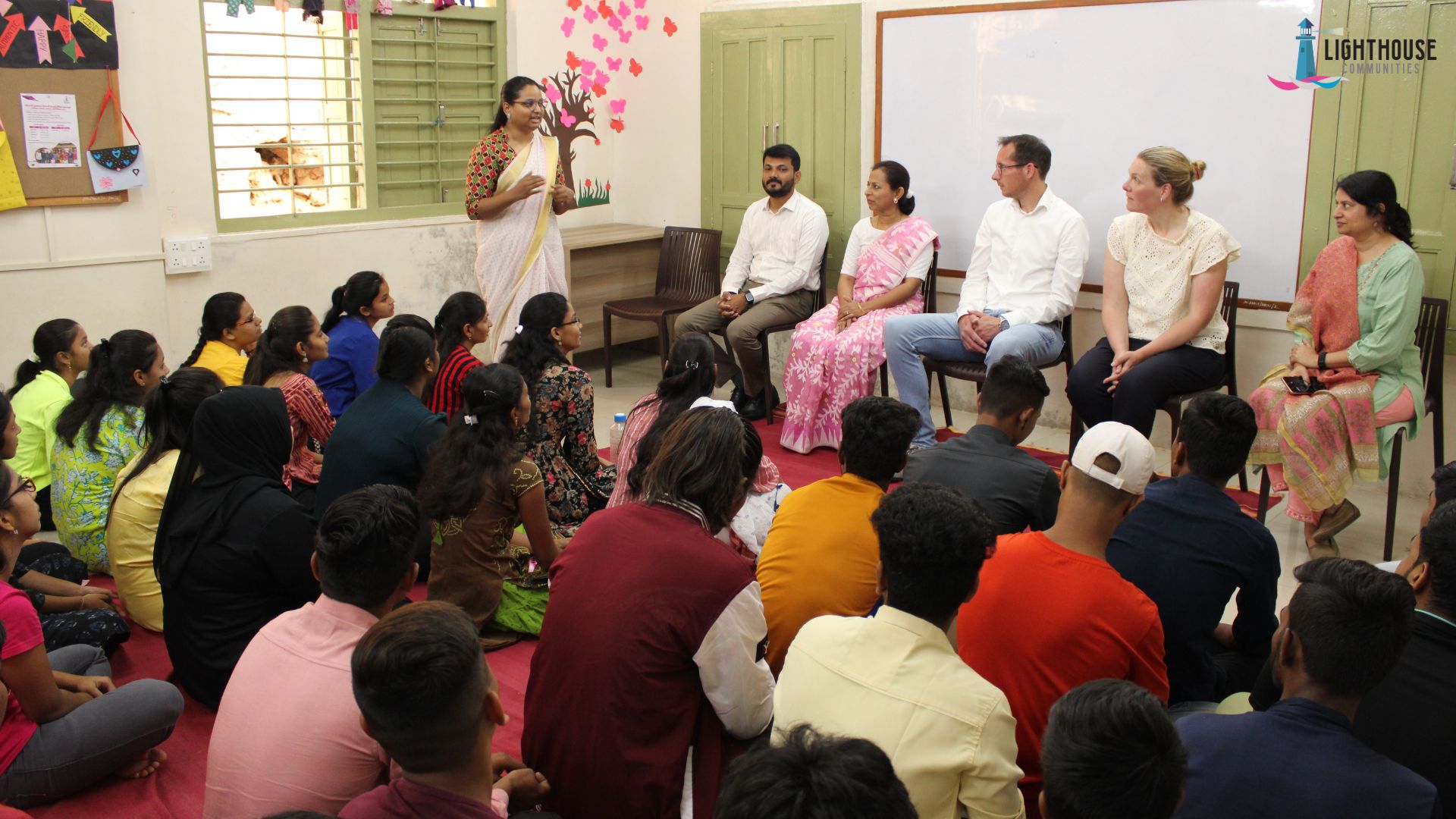 Afterward, they visited the home of Yogita Rajendra Shitole, an alumna of the Lighthouse. Yogita successfully completed her Nursing Assistant course and now works at Ruby Hospital. Mr. Albert Hoekman also spoke to the youth, advising them to seize the opportunities coming their way. We would like to express our gratitude to Astrid and Albert for visiting the Lighthouse and spending time with the youth.